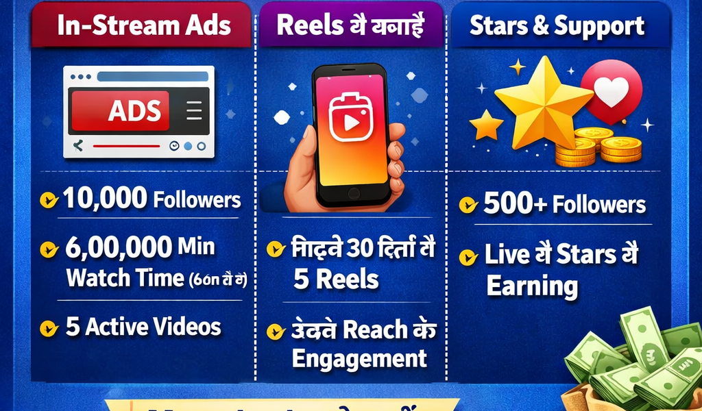 Meta Platforms के Facebook पर monetization के लिए कुछ शर्तें होती हैं: