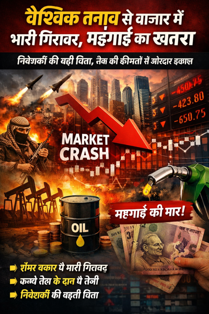 आज का दिन वैश्विक अर्थव्यवस्था और वित्तीय बाजारों के लिए काफी उतार-चढ़ाव भरा रहा। दुनिया भर में बढ़ते भू-राजनीतिक तनाव, कच्चे तेल की कीमतों में तेजी और आर्थिक अनिश्चितता ने निवेशकों की चिंता बढ़ा दी है। इसका असर भारत समेत कई देशों के शेयर बाजारों पर देखने को मिला, जहां दिनभर अस्थिरता का माहौल बना रहा।